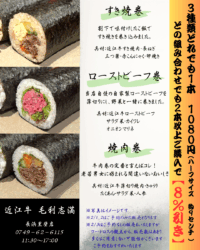 「近江牛 毛利志満長浜黒壁店」では、”恵方巻”のご予約を開始いたしております。